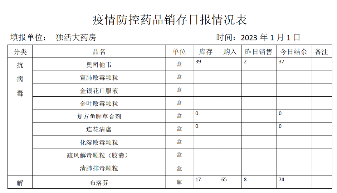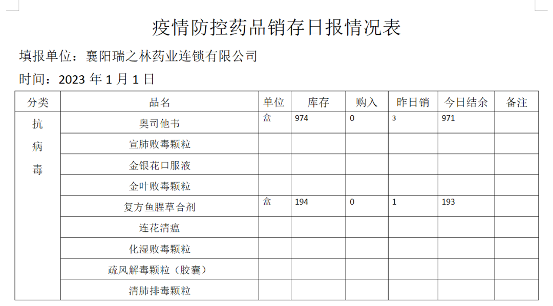 天济大药房疫情防控药械销存日报情况表 ↓↓ 襄阳瑞之林药业疫情防控药械销存日报情况表 ↓↓ 襄阳余五药业疫情防控药械销存日报情况表 ↓↓ 独活大药房疫情防控药械销存日报情况表 ↓↓ 来源:谷城县融媒体中心 编辑:翟竞|审核:余运超