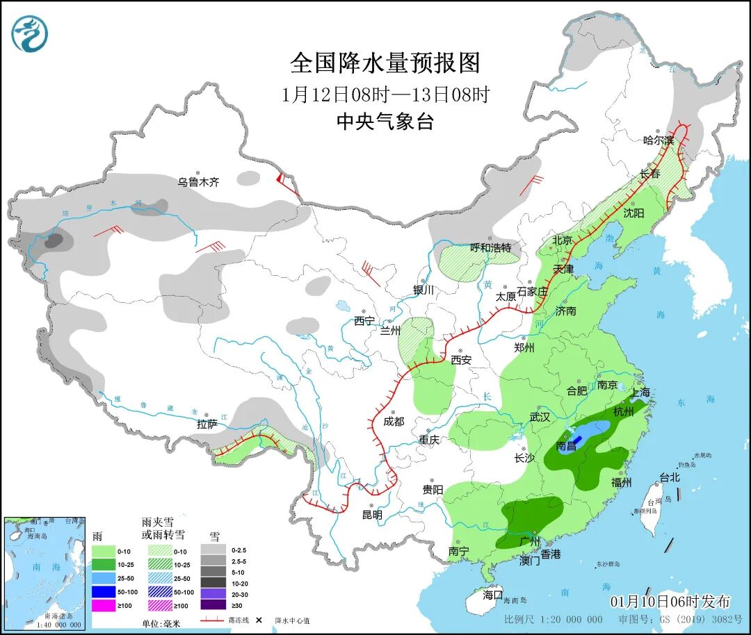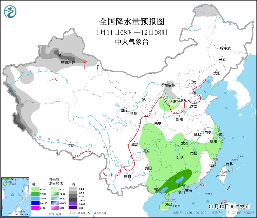 中央气象台今日8时发布天气公报称,1月9日8时至今日6时,新疆阿勒泰、塔城、伊犁河谷等地出现小到中雪,阿勒泰局地大到暴雪;浙江南部、江西东部、福建大部、广东大部、广西南部、海南岛东部及台湾岛东北部等地出现中雨,福建中部、广东西部、台湾岛东北部等地大雨或暴雨(50~60毫米)。