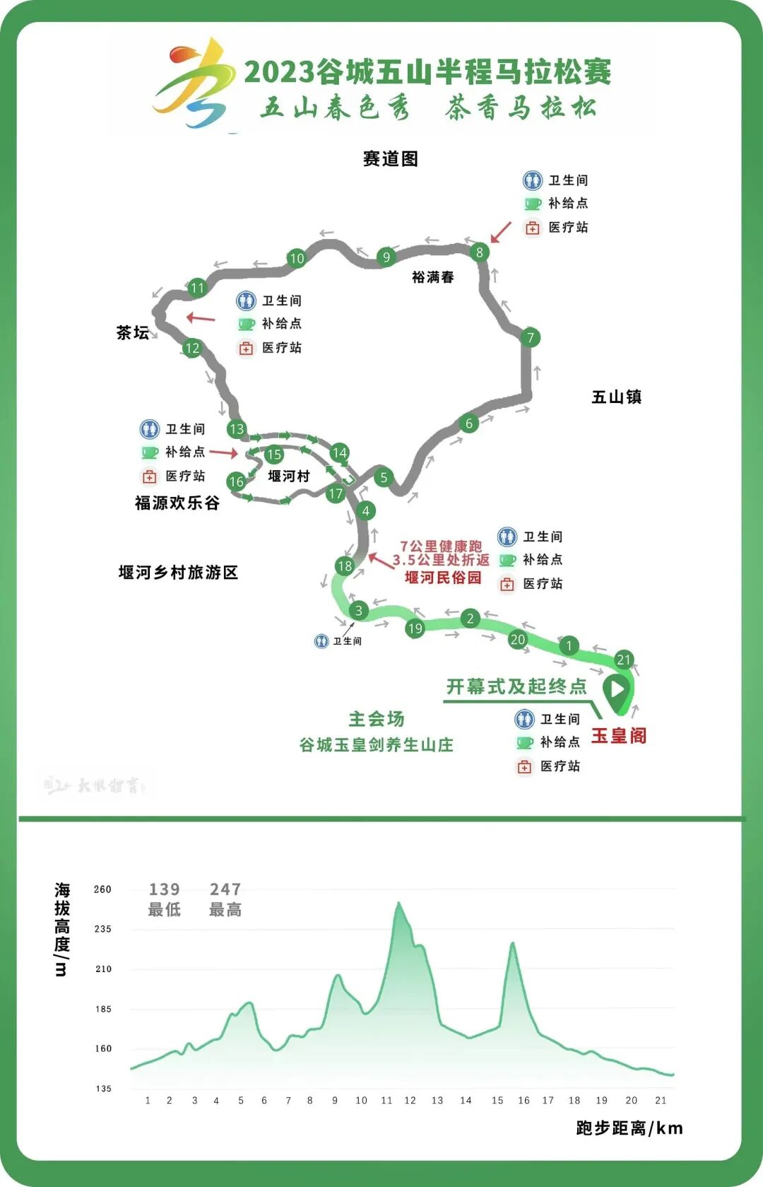 ①半程马拉松:玉皇阁(起点)—堰河民俗园—凤凰寨—楸树垭子—邓家湾—裕满春—茶坛—福源欢乐谷—堰河民俗园—玉皇阁(终点)