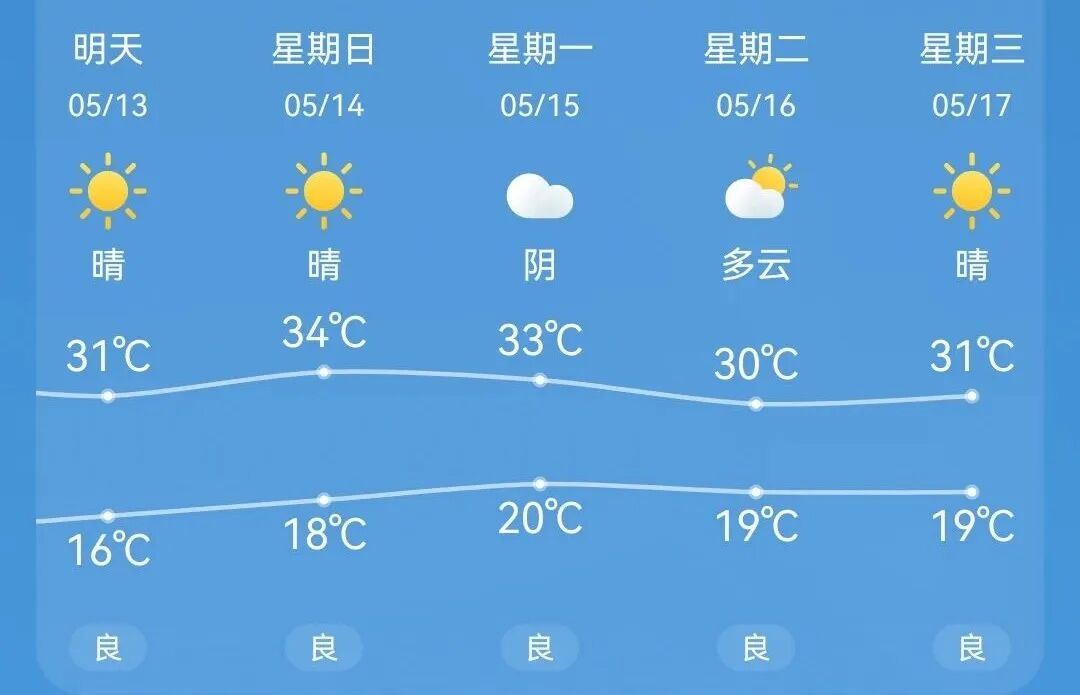 天气转晴,晾晒和出游都可以安排起来了!不过,大家外出要注意防晒。此外,昼夜温差还是有点大,体弱多病人群要注意及时增减衣物以防感冒。