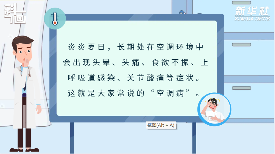 炎炎夏日,长期处在空调环境中,会出现头晕、头痛、食欲不振、上呼吸道感染、关节酸痛等症状。这就是大家常说的“空调病”。一篇动画来了解怎样预防“空调病”。 来源:新华社 编辑:党安宁|责任编辑:冷晶晶 审核:余运超 琚晓青