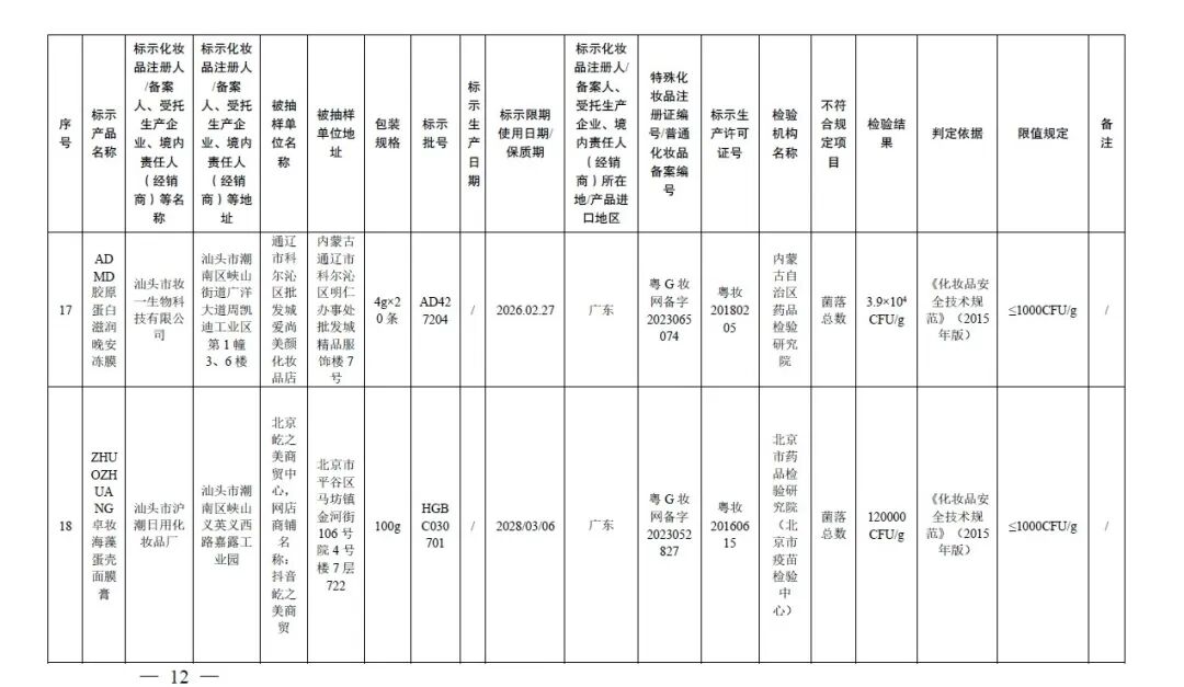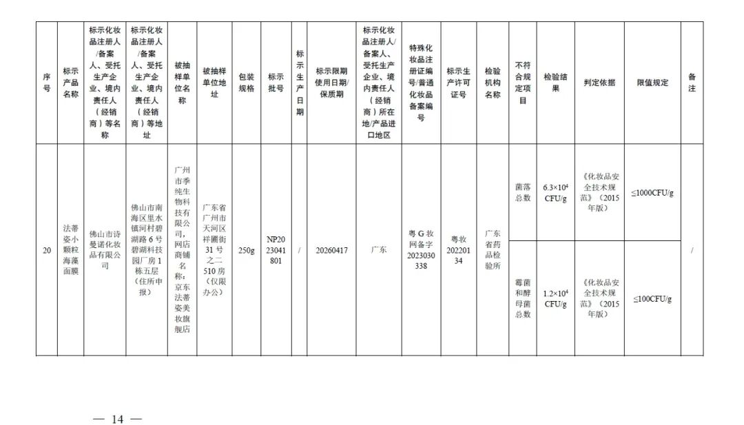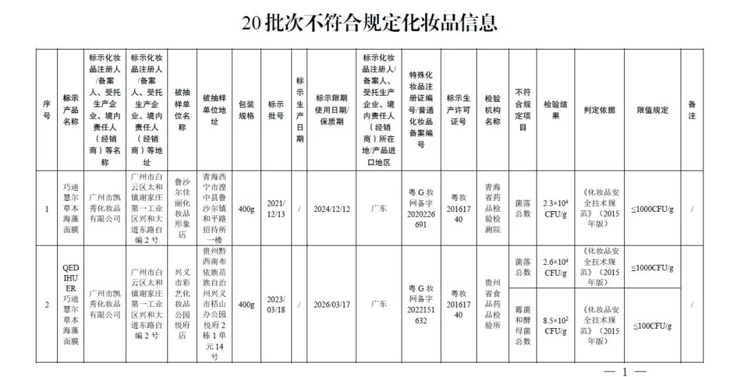 20批次化妆品不符合规定