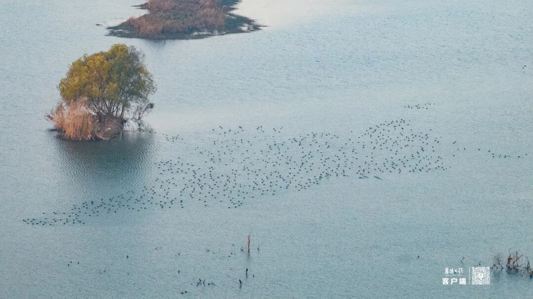 成群结队的鸟儿在襄阳汉江国家湿地公园栖息。杨东 摄