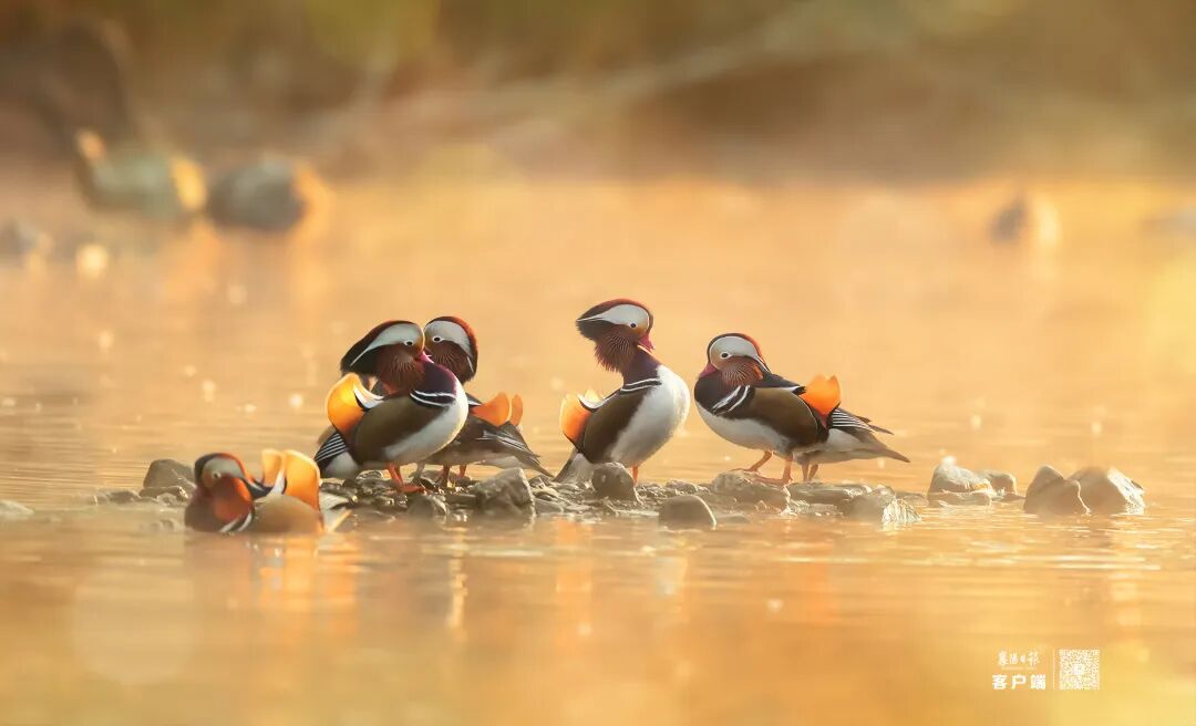 鸳鸯在南漳县清凉河国家湿地公园嬉戏。叶俊 摄