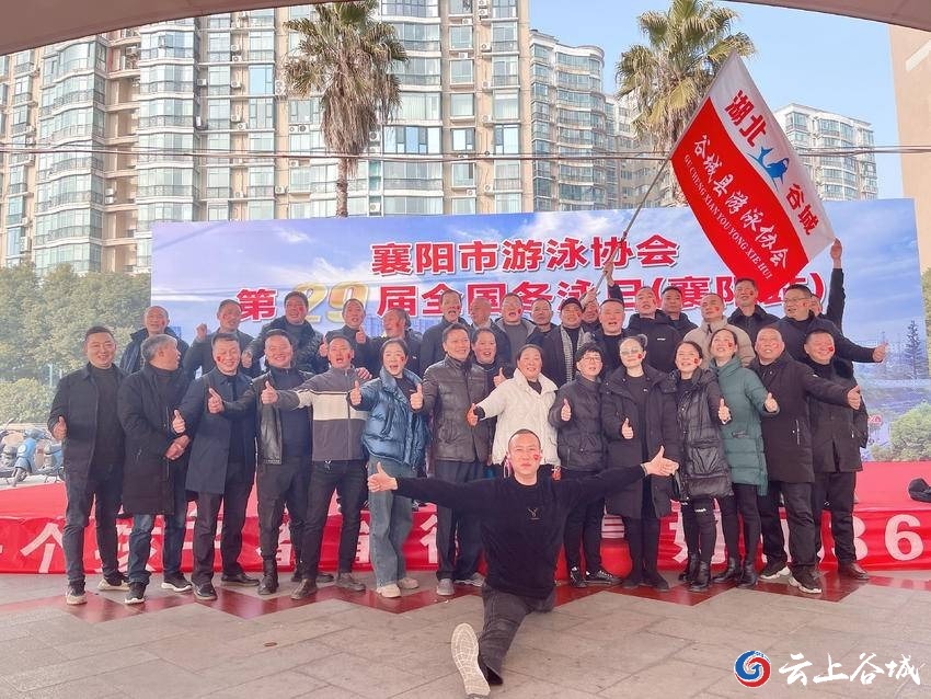“我冬泳!我健康!我快乐!”“祝谷城蒸蒸日上!祝全国各族人民新年快乐!”……