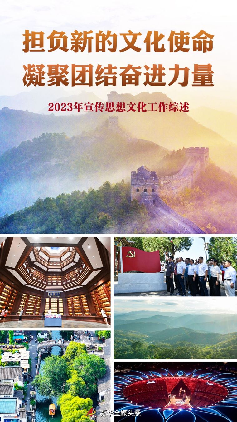 回望过去一年,宣传思想文化战线自觉担负起新的文化使命,围绕贯彻党的二十大关于文化建设的战略部署,强化思想引领、不断守正创新,大力唱响强信心的主旋律,为党和国家事业发展提供了坚强思想保证、强大精神力量、有利文化条件。