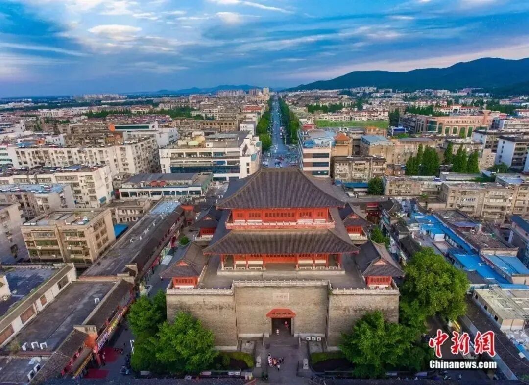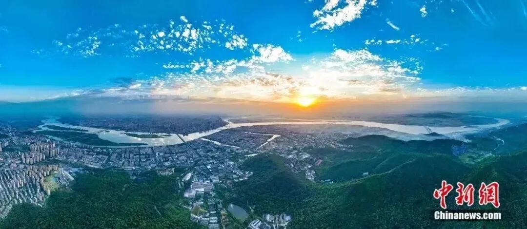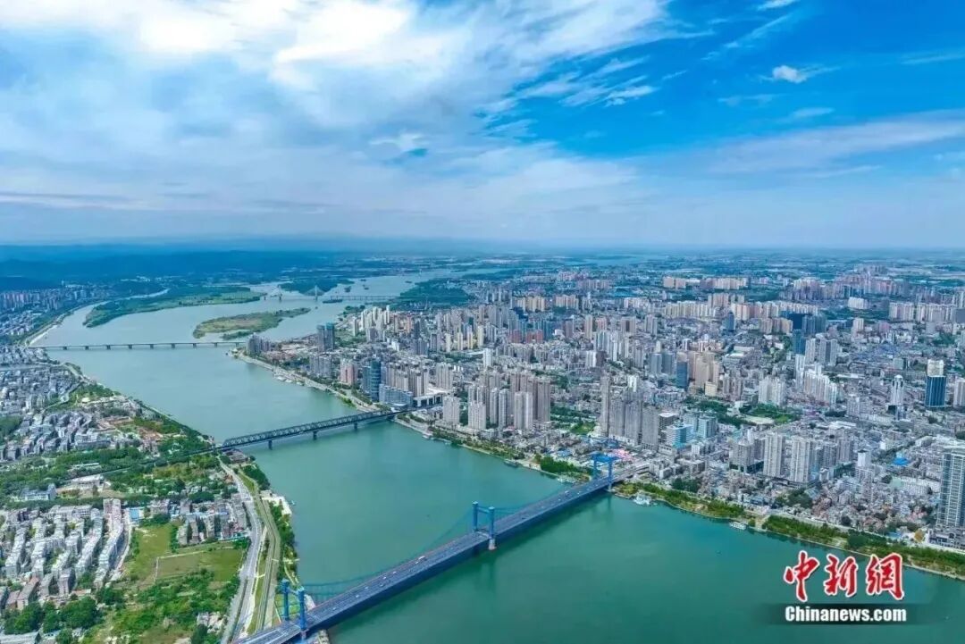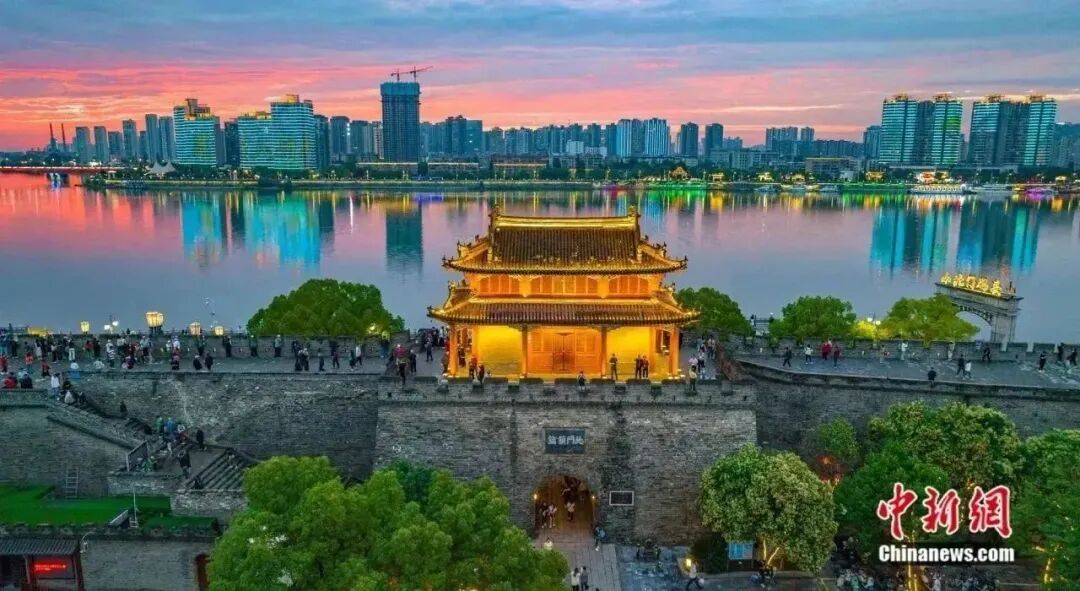 俯瞰湖北省襄阳市城区,呈现出“一江碧水穿城过 十里青山半入城”的景象。杨东 摄