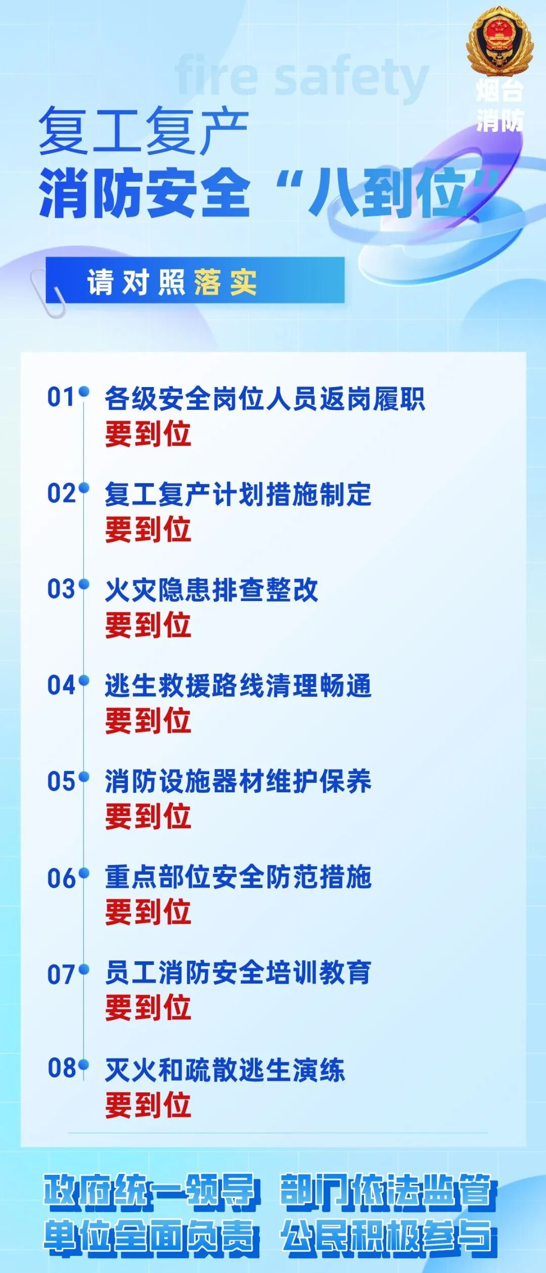 (二)开展一次消防安全培训。各单位要及时召开收心会、安全交底会,强化全体员工消防安全意识。对新入职或转岗的员工、临时工,要开展岗前消防培训,让其掌握单位(岗位)火灾危险性、单位消防安全制度、消防安全操作规程及火灾报警知识、初期火灾扑救和疏散逃生技能。对电工、焊工等岗位一定要聘用有相应资质的从业人员。各劳务输出单位要集中对务工人员开展一次消防安全培训,使其掌握应知应会消防知识技能,避免引发火灾或受到火灾的危害。