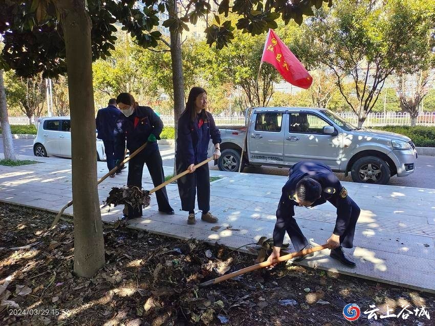 3月29日,谷城县城市管理执法局积极响应“双报到”活动号召,联合城关镇后湖社区,清理北辰大道锦绣香江小区段绿化带内的垃圾,提高社区环境,共创美好家园。