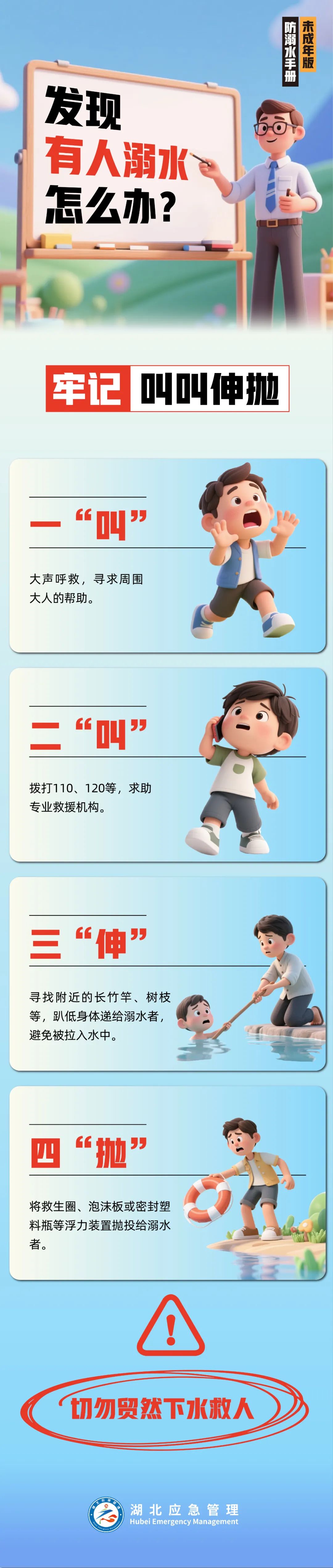 随着夏季气温升高 各种涉水活动增多 溺水事故也进入了高发期 哪些情况容易溺水? 发现有人溺水怎么办? 不慎落水如何自救? 这份未成年人防溺水手册 家长孩子都要了解 ↓↓↓ 来源:湖北应急管理 编辑:邓植元|审核:余运超 琚晓青
