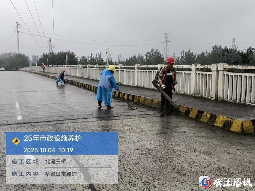 同时,他们清除桥梁缝隙中的碎石和尘土,清理大桥伸缩缝、泄水孔,做好日常养护,保障桥梁安全排水,消除安全隐患。