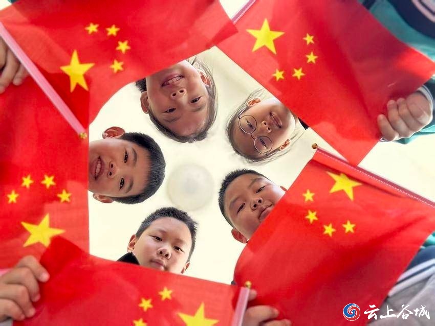 教室里、操场上、走廊边、花丛旁,到处都是孩子们和国旗的合影。蓝天白云做背景,操场跑道来作证,孩子们洋溢的笑容中满是对国旗的爱、对祖国的情。