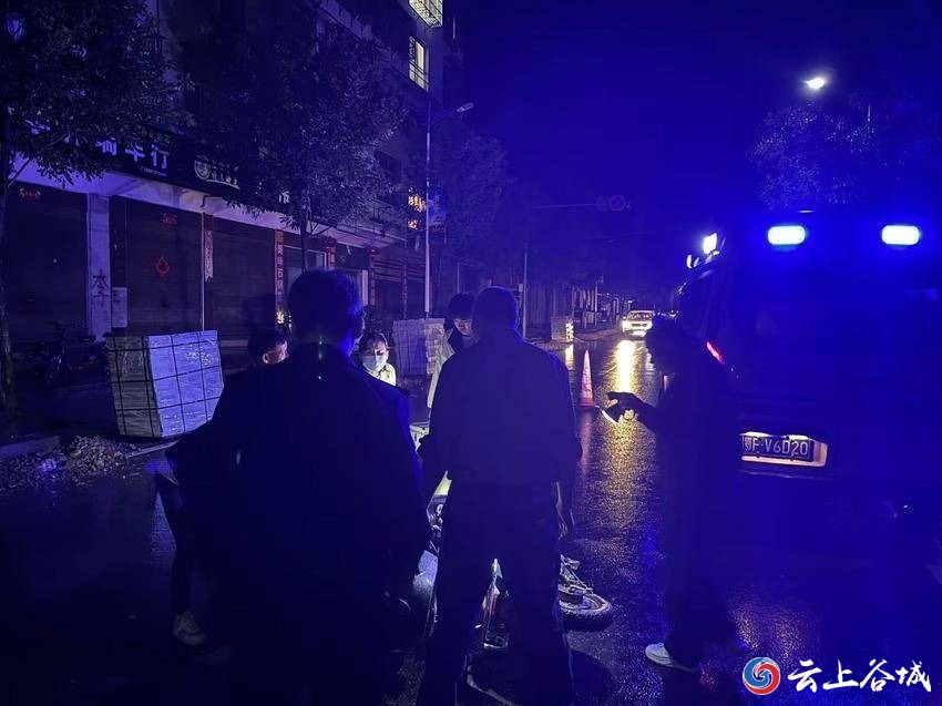 10月9日18时许,天色已暗且下着雨,谷城县公安局石花派出所民警高仁健与辅警孙大伟正驱车前往邻镇处理公务。途中,他们发现一名老人疑似骑自行车不慎摔倒在路旁。情况紧急,两人立即停车上前查看。