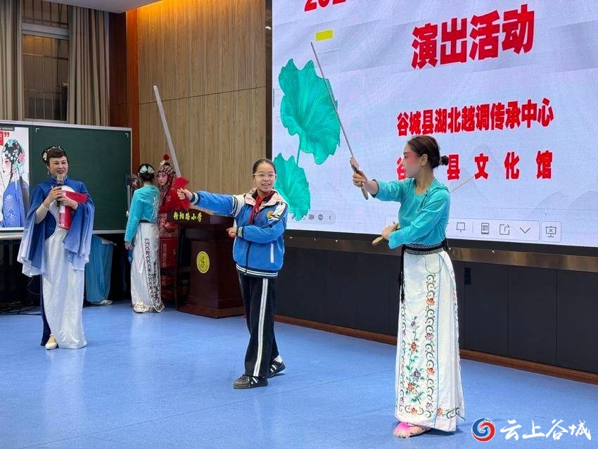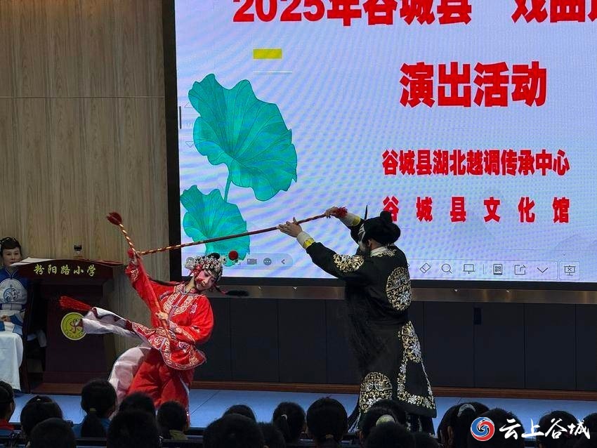 10月11日,谷城县粉阳路小学的校园里锣鼓喧天、喝彩连连,由谷城县湖北越调传承中心和县文化馆联合开展的“戏曲进校园”专场演出在此温情上演。经典剧目轮番亮相,以生动鲜活的形式,让传统文化走进青少年心中,收获众多“小戏迷”。