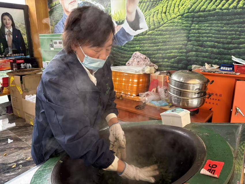 核心的炒制环节沿用传统工艺,在180℃的铁锅中,通过“抖、翻、抄”等手法精准把控,完成杀青。这不仅锁住了桑叶的天然清香,使其色泽由鲜绿转为深绿,更为其注入了醇厚口感的基础。