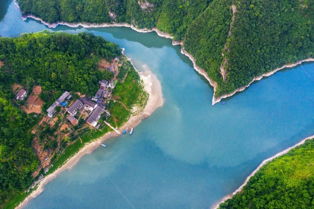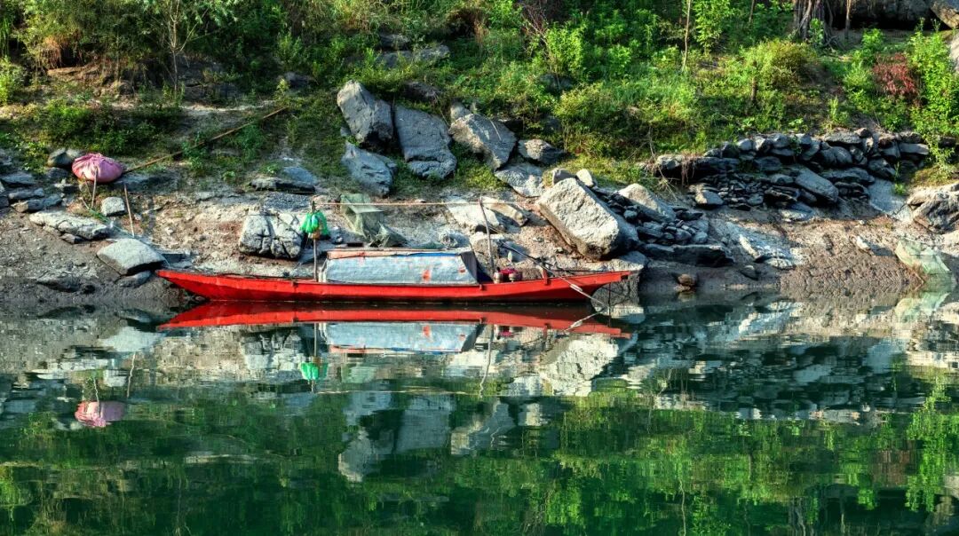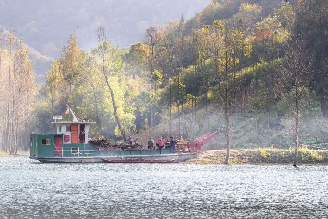 粉水上的小船。南河之水发源于神农架,流淌在深山幽谷之中,清澈见底,纯净无瑕,相传为汉丞相萧何夫人脂粉之水,故又名“粉水”。