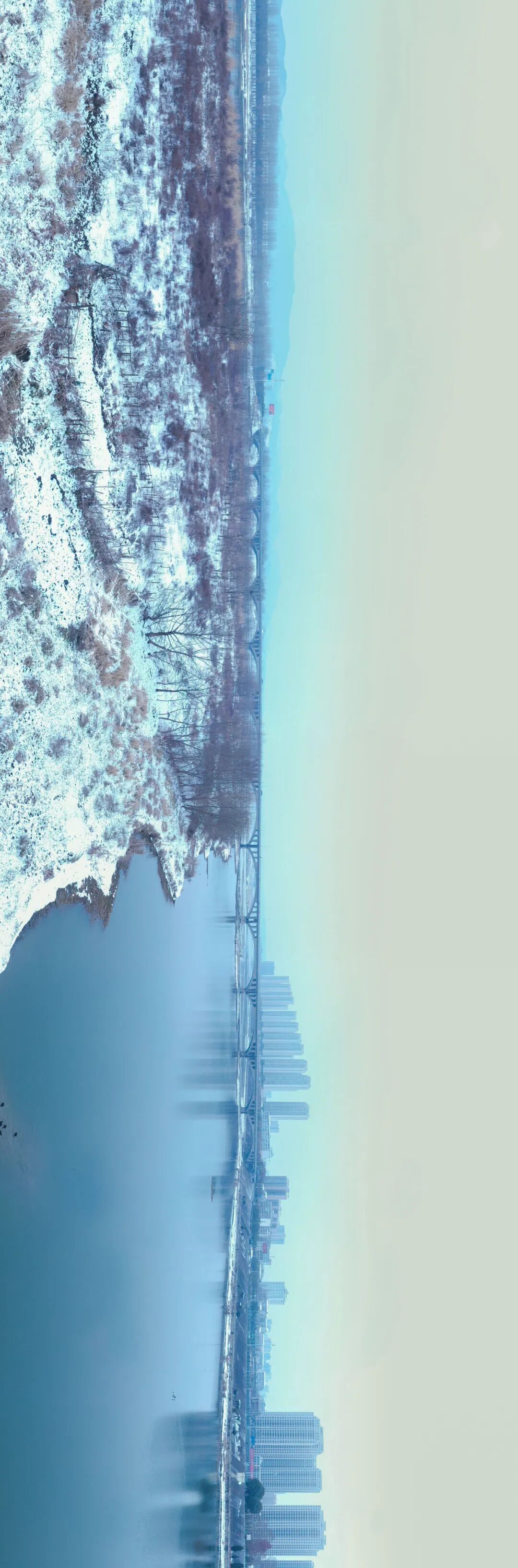 南河进入谷城县城关镇后,河道明显变宽,中间出现了不少沙洲,因为雪的装扮,沙洲十分美丽。