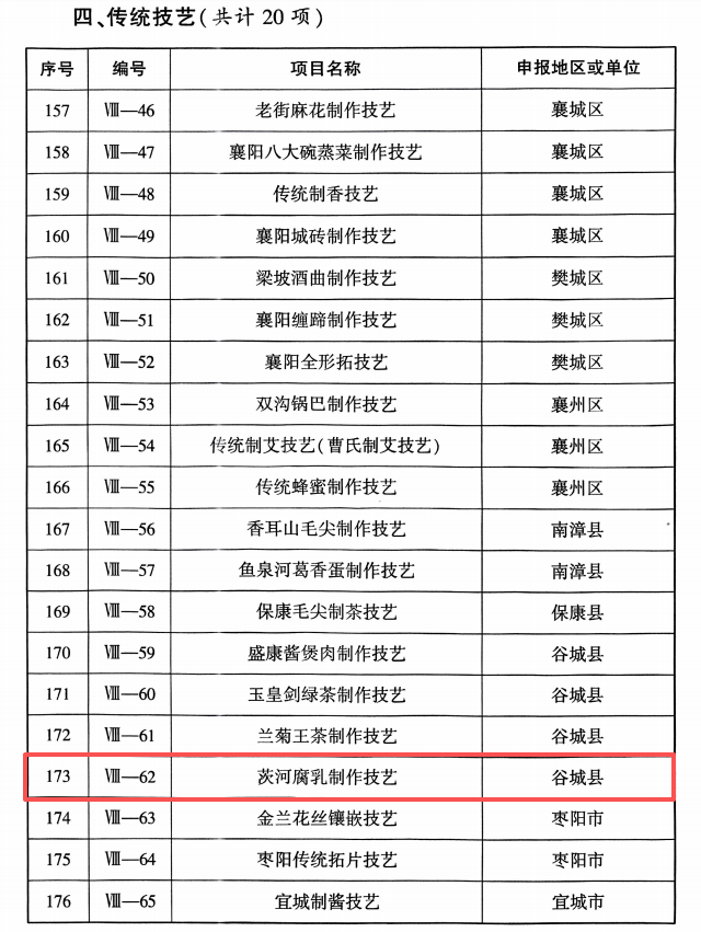 近日,从襄阳市文化和旅游局传来喜讯,经专家评审、社会公示等严格程序,谷城县“茨河腐乳制作技艺”被正式列入襄阳市非物质文化遗产代表性项目名录。此项荣誉标志着这一承载着数代茨河人味觉记忆与匠心智慧的传统技艺,其深厚的历史底蕴、独特的文化价值和精湛的制作工艺获得了官方认定与保护,为襄阳地方传统文化的宝库再添一颗璀璨明珠。