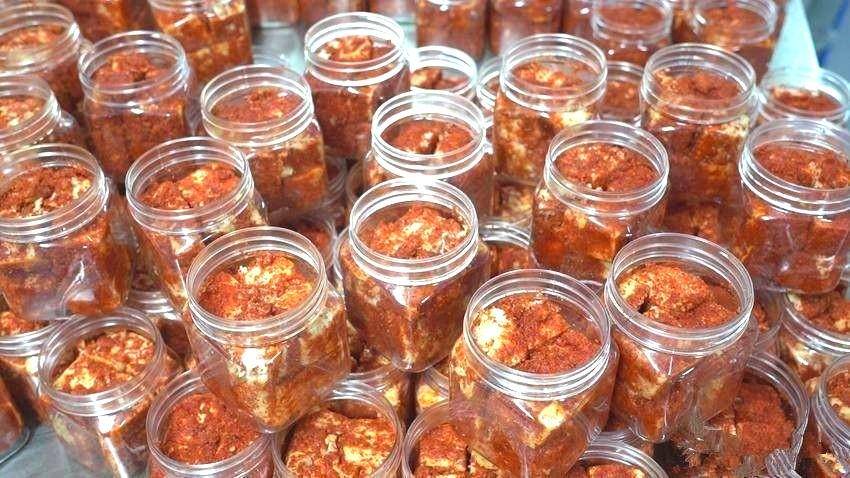 茨河腐乳,产自人杰地灵的谷城县茨河镇,其制作历史源远流长。它以优质黄豆、茨河本地天然山泉水和多种秘制香料为原料,秉承传统古法,历经选豆、浸泡、石磨制浆、柴火煮浆、石膏点浆、沥水成型、切块装框、恒温发酵、配料调制等十余道核心工序精制而成。其工艺特点在于对温度、湿度和时间的精准把控,以及依赖代代相传的独特菌种进行天然发酵,使得成品腐乳质地细腻绵软,口感醇厚鲜香,风味别具一格,在荆楚大地享有盛誉。