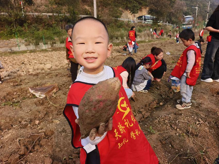 活动现场,孩子们在家长和工作人员的指导下,弯腰扒土、仔细探寻,当一个个或大或小、形态各异的红薯从泥土中“破土而出”时,孩子们的脸上瞬间绽放出惊喜的笑容。