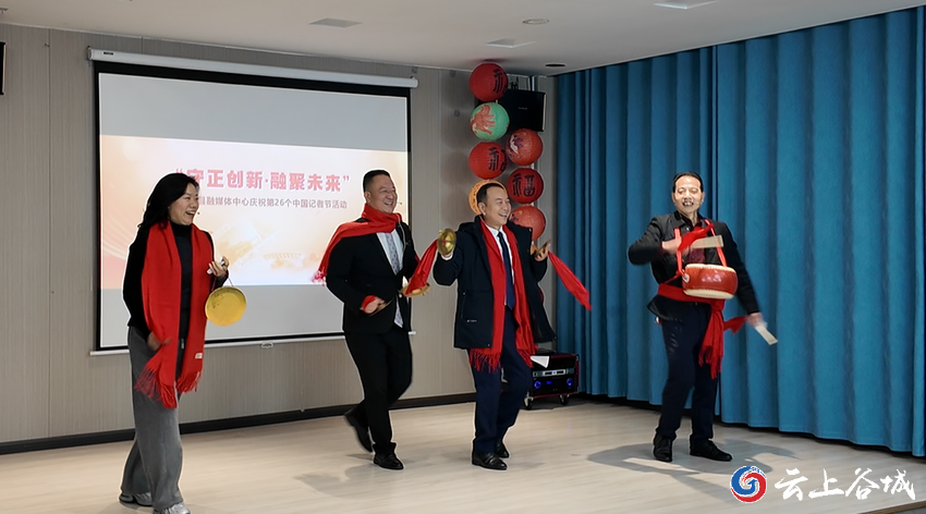 11月7日下午,谷城县融媒体中心全体干部职工在城关镇老君山村举行第26个中国记者节庆祝活动。本次活动以“守正创新·融聚未来”为主题,通过短片展映、文艺表演、故事分享与互动环节,展现融媒人扎根基层、服务群众的初心,进一步增强团队凝聚力与职业荣誉感。