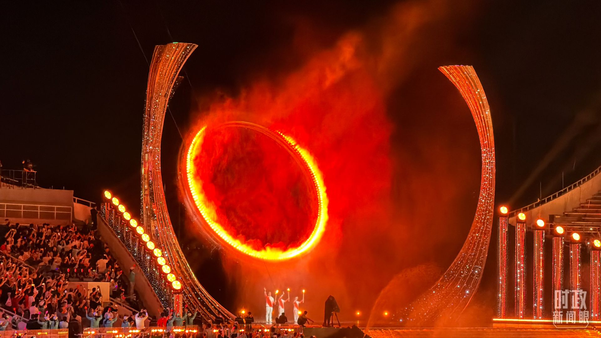 △第十五届全运会主火炬点燃环节。(总台央视记者范一鸣、蒋硕拍摄)
