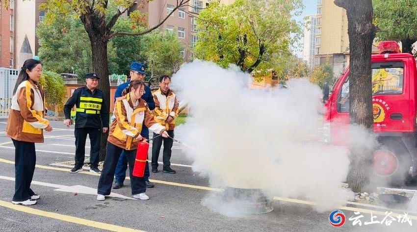 演练结束后,消防员叔叔化身“安全老师”,现场展示了灭火器、消防水带等装备。同时组织了一场全员消防技能实训,邀请老师们操作灭火器扑灭模拟火源、给大家展示用锅盖精准覆盖油锅火苗、教门卫用消防栓接水灭火、指导厨房师傅使用灭火毯覆盖燃烧物……引得孩子们连连拍手:“消防员叔叔好厉害!”“老师也会灭火啦!”