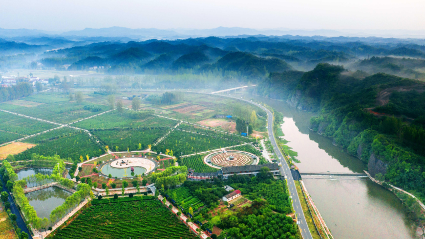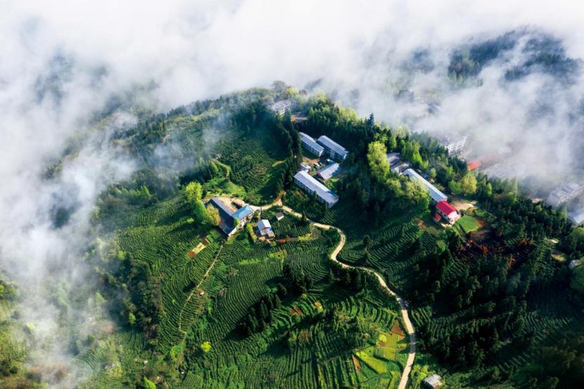 登上观景台远眺,层叠的茶山与远方的村庄构成一幅产业兴旺的画卷。