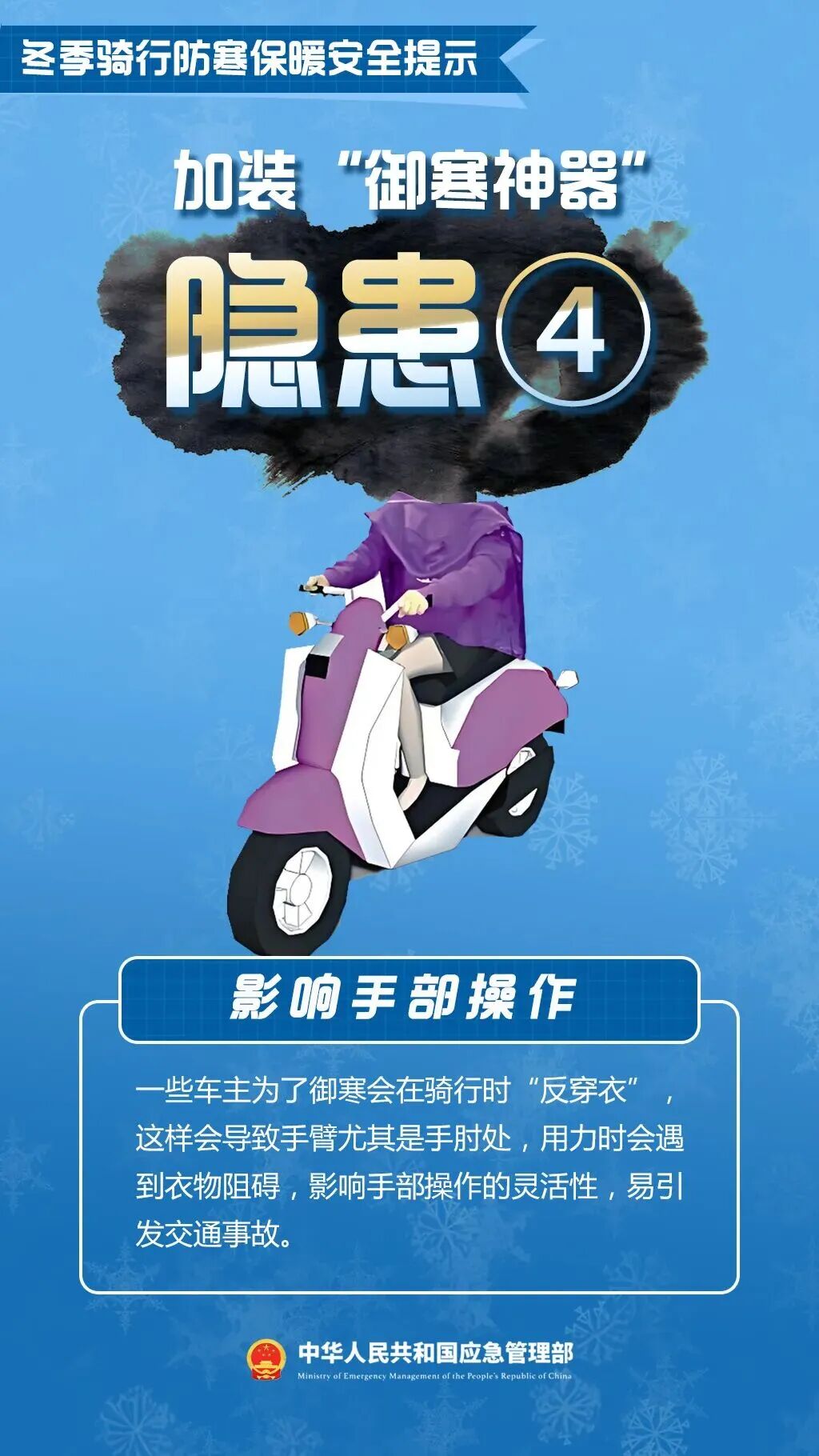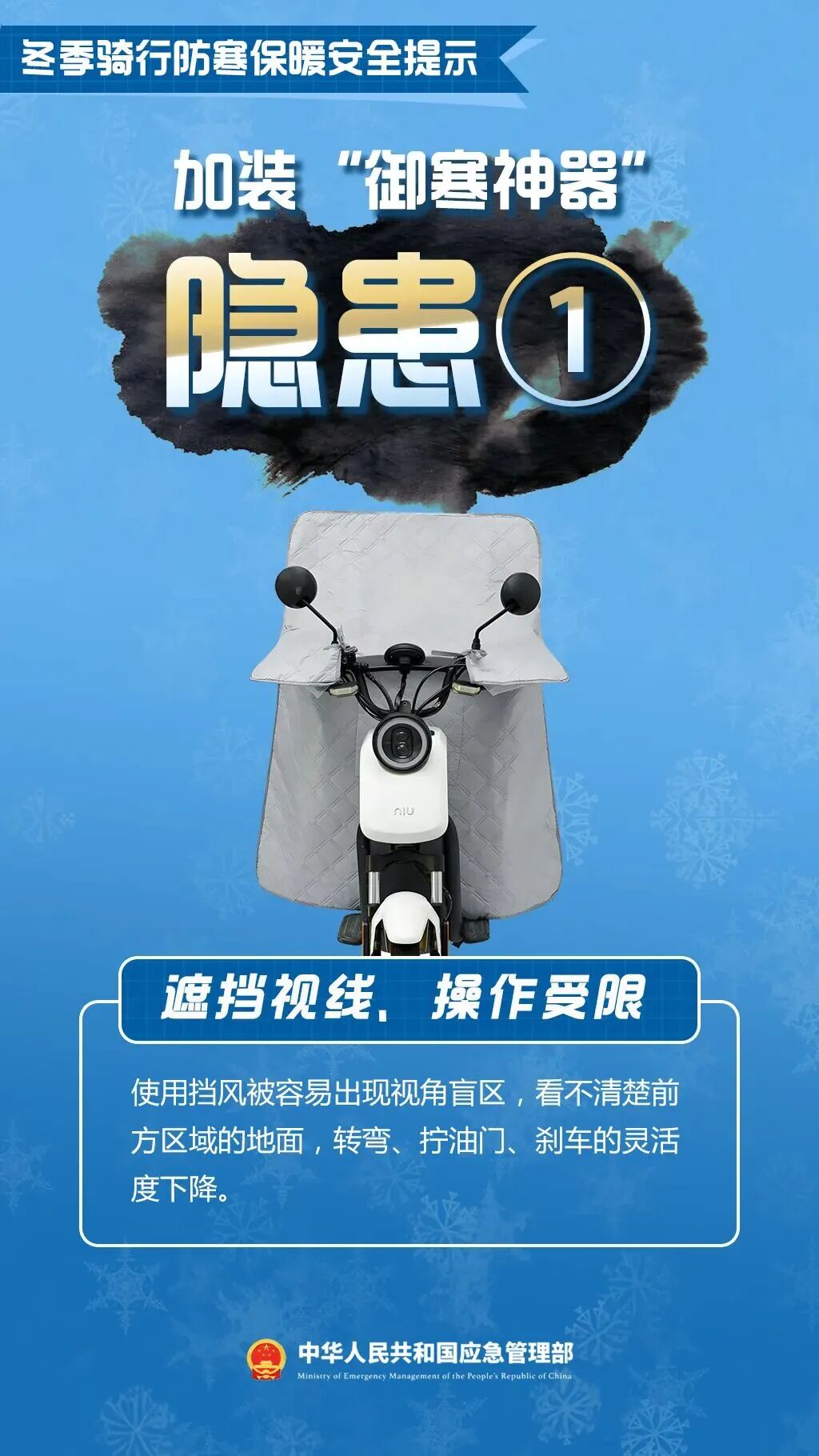 “挡风被”一般比较宽大,下半部分过长,很容易在骑行过程中被卷入车轮内或被周边车辆拖拽,影响交通安全。