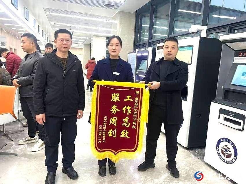 “这就办好了?”当崭新的不动产权证书递到手中时,业主代表付先生的声音里满是惊喜。当天下午,他作为业主代表专程送来一面写着“工作高效 服务周到”的锦旗,紧紧握住赵红的手说:“原本以为这么复杂的手续要跑断腿,等上个把月,没想到短短几天就办好了,真是太感谢了!”