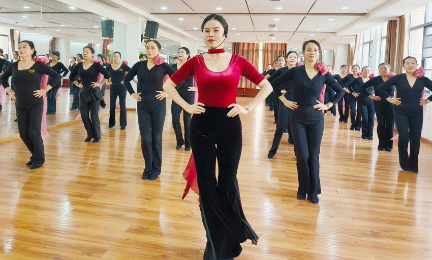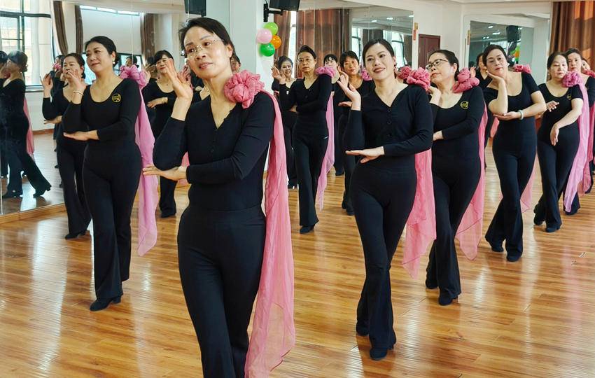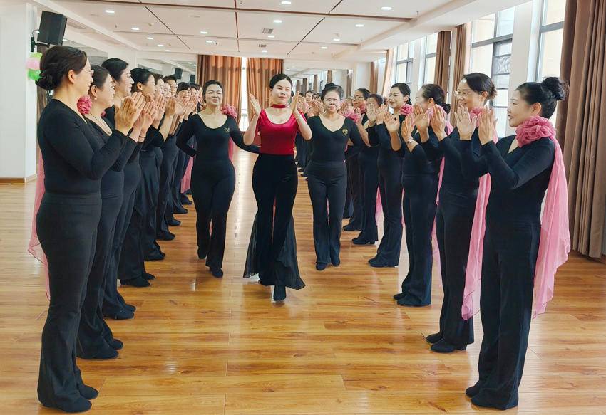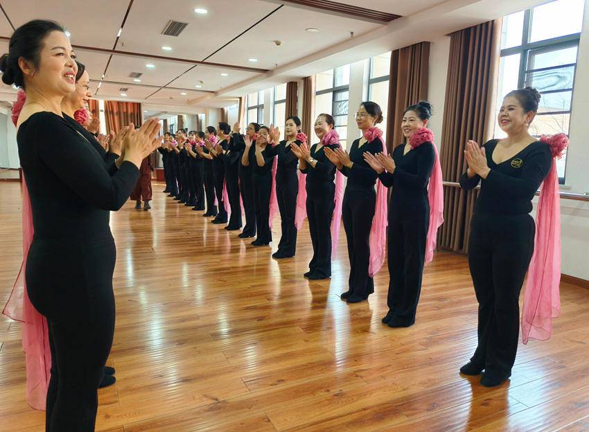 形体班的展演则勾勒出优雅动人的画卷。12月6日,热身训练、体态矫正、特色表演等穿插进行,学员们在《栀子花开》《月亮照山川》等悠扬曲目伴奏下,舒展身姿、调整体态,每一个动作都尽显端庄韵味。30多岁的授课老师帅德琴始终秉持奉献初心,手把手带学员练线条、塑形体,“陪着阿姨们练出美丽、舞出健康,看着她们身心愈发愉悦,我既知足又幸福”。