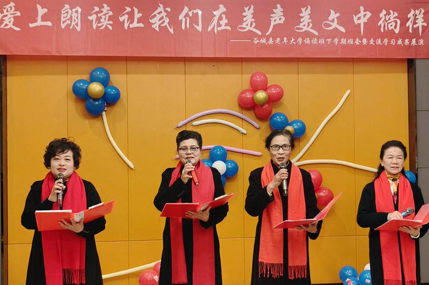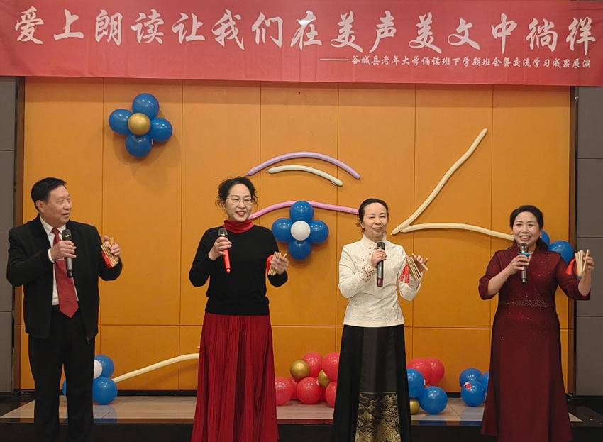 班长李宏的成长更令人瞩目,两年诵读学习让她从普通学员蜕变为主持达人,连续两届站上谷城县委老干部局九九重阳晚会舞台,她动情坦言:“是老年大学给了我发光的机会,成就了如今闪耀的自己。”