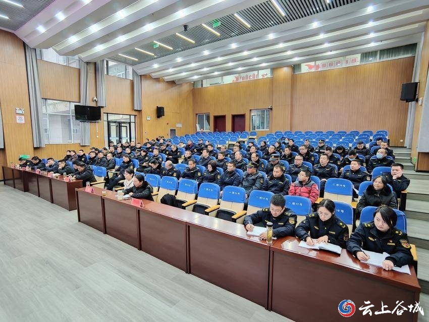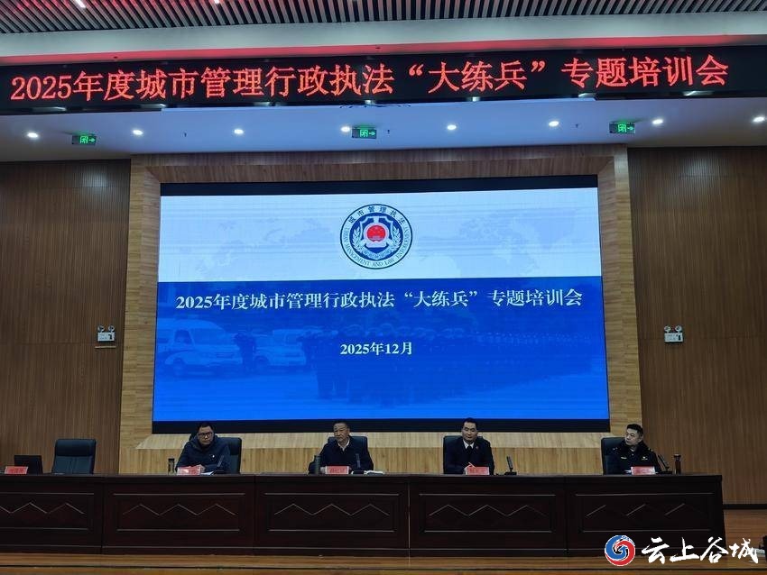 12月12日下午,谷城县城市管理执法局举办2025年度城市管理行政执法“大练兵”专题培训会。局机关各股室负责人、县城市管理综合执法大队全体执法人员、局属二级单位及各乡镇综合执法中心业务骨干,共计90余人参加此次培训。