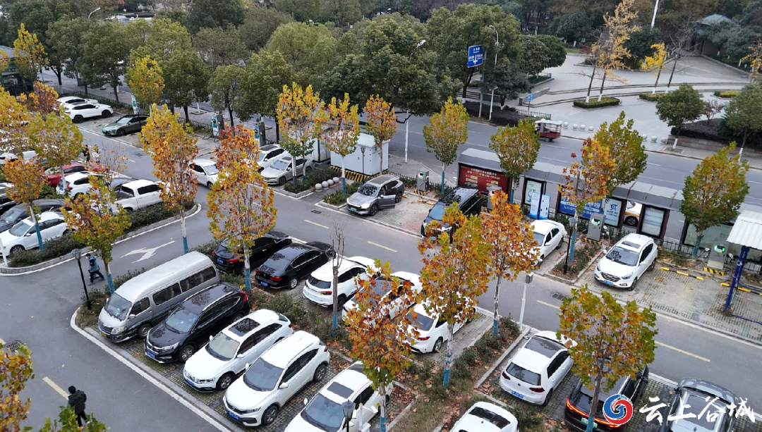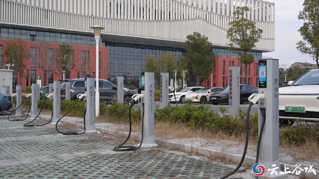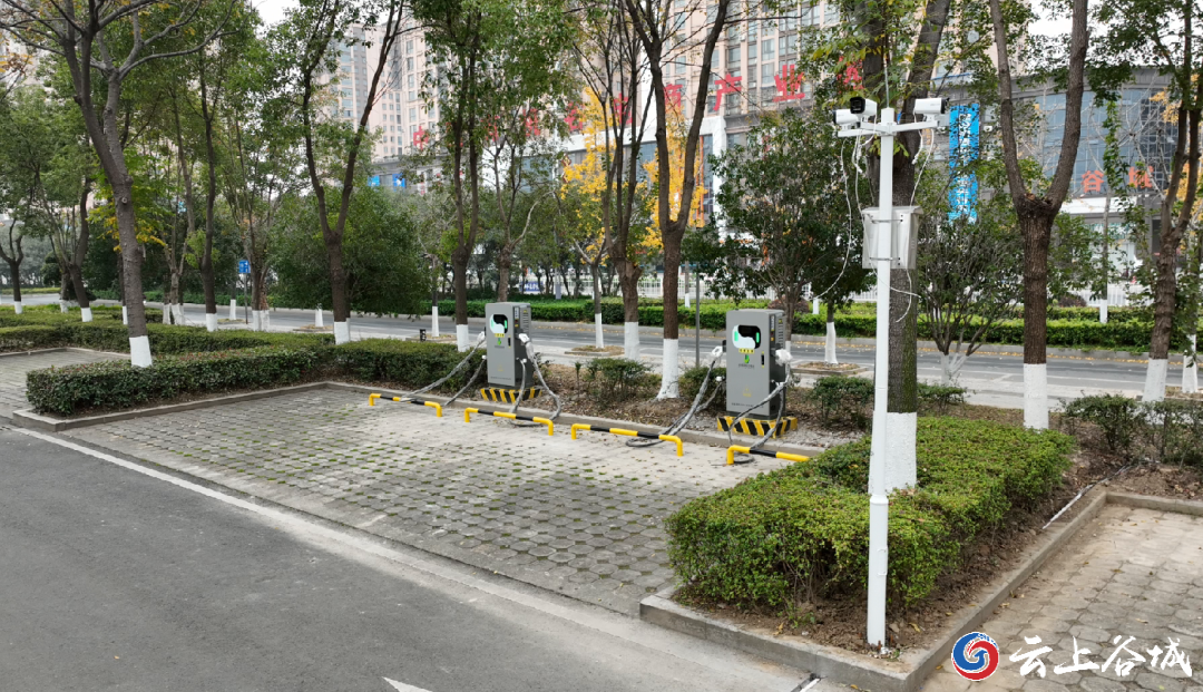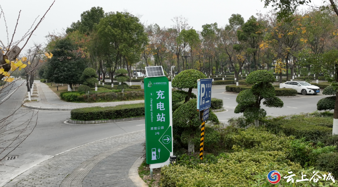 在谷城湿地公园的停车场,新建的充电桩整齐排列,有不少新能源车已经开始在这里充电。