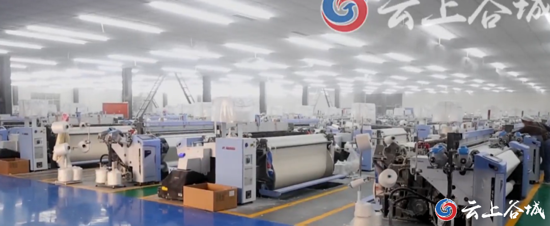 在中林纺织生产车间,近百台新引进的智能化织机正全速运转,工人通过智能控制系统实时监测各生产流程。