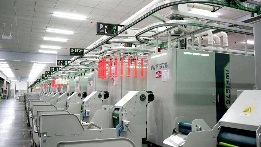 不止是亿富机械,谷城的传统纺织企业也在“五化”平台赋能下焕发新生机。走进襄阳裕丰纺织有限公司的生产车间,智能细纱机高速运转,机器人精准完成自动推纱操作,彻底颠覆了“千人纱、万人布”的传统纺织印象。今年,裕丰纺织累计投入超1.2亿元用于技术改造和产品研发,联合高校搭建协同创新平台,实现涤棉混纺纱线超高速生产,成功牵手国内外知名服装品牌。