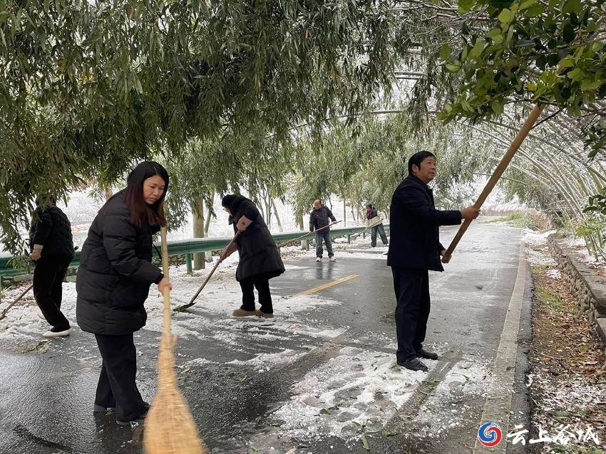 元旦节前夕,谷城县迎来大范围降雪。为切实保障村民和游客出行安全,日前,谷城县五山镇堰河村组织村干部开展清雪除障工作,大家分工协作清理路面积雪、断枝落叶,同时对被积雪压弯的竹枝进行扶正,保障道路畅通。