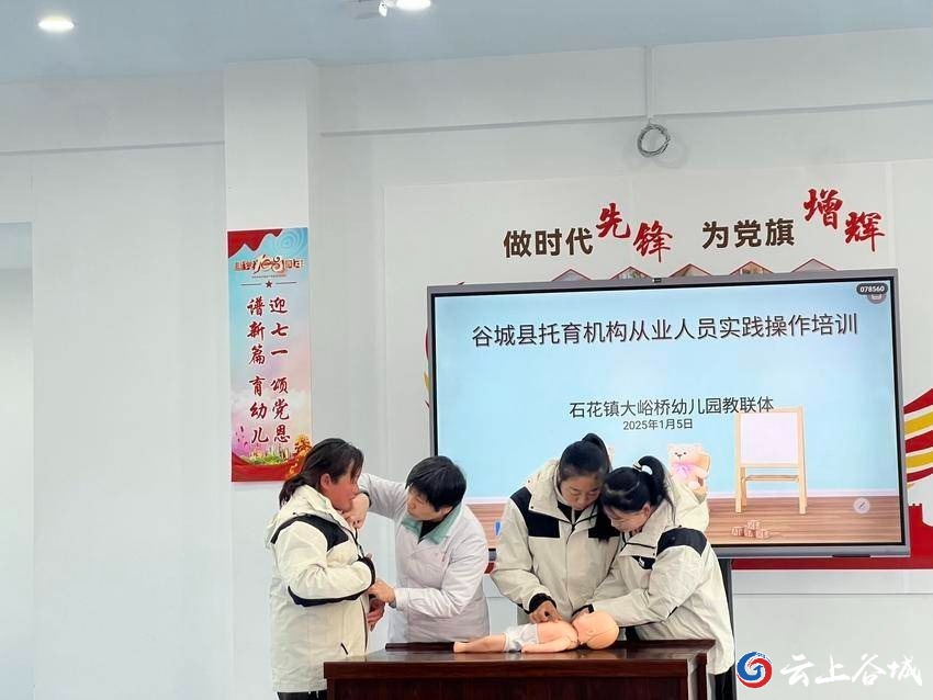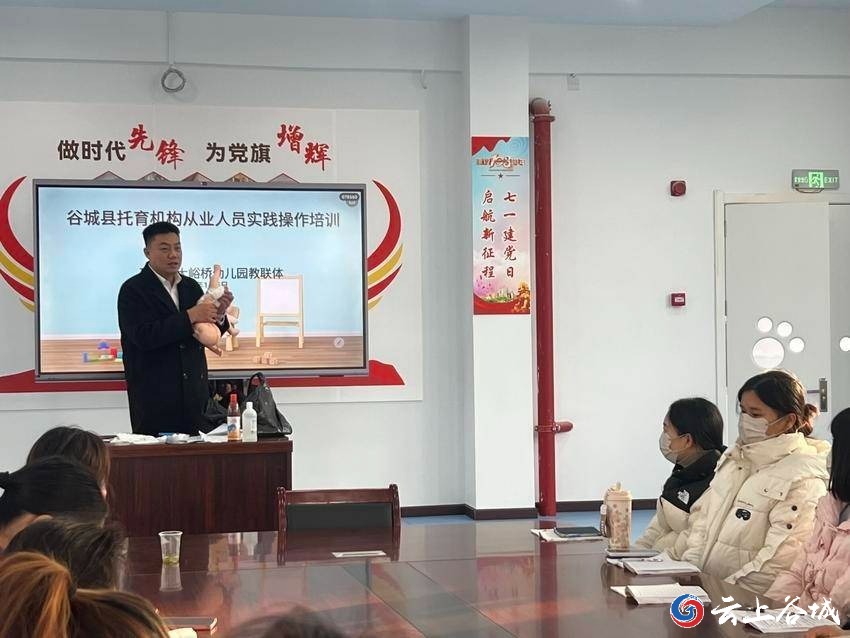 为全面提升托育机构从业人员的综合素质和专业技能,进一步推动托育机构向专业化、规范化发展,1月5日,谷城县石花镇大峪桥幼儿园邀请县妇幼保健院专业医师对全园保育员进行托育机构从业人员提升培训。