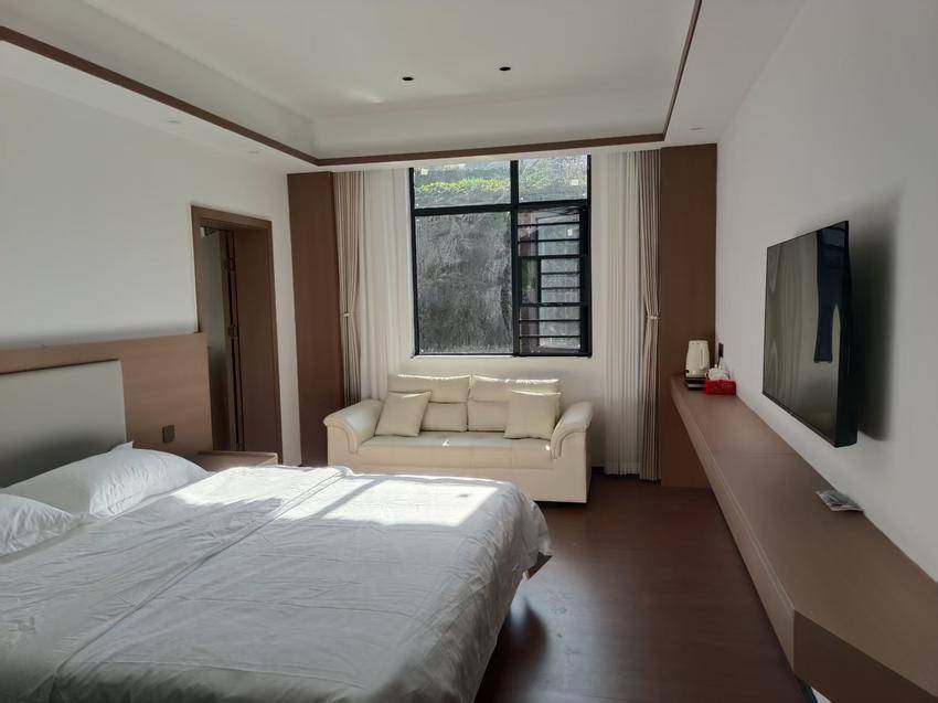 闲置资源巧利用,老旧建筑焕新生。曾经的鲁家油坊村村委会办公楼因设施陈旧,面临闲置困境,在鲁家油坊村“两委”与村民共同协商下,决定通过改造赋予其新生命。项目投入专项资金,在保留原有建筑风貌的基础上,对空间布局、功能分区进行全面升级。改造后的民宿以灰白色调为主,门头匾额古朴典雅,内部空间敞亮通透,既延续了村庄历史肌理,又注入了简约舒适的现代化元素,实现“旧房新生”的华丽蜕变。