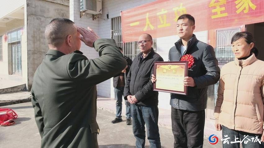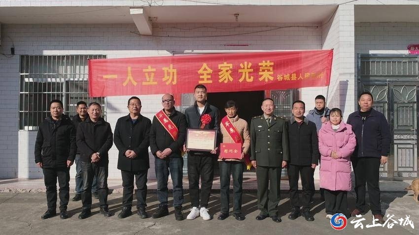 一人立功,全家光荣。1月7日,谷城县五山镇举行立功受奖军人家属送喜报活动仪式,为荣立个人三等功的现役军人兰汪洋家属送上喜报与祝贺,让军人军属共享这份荣耀。