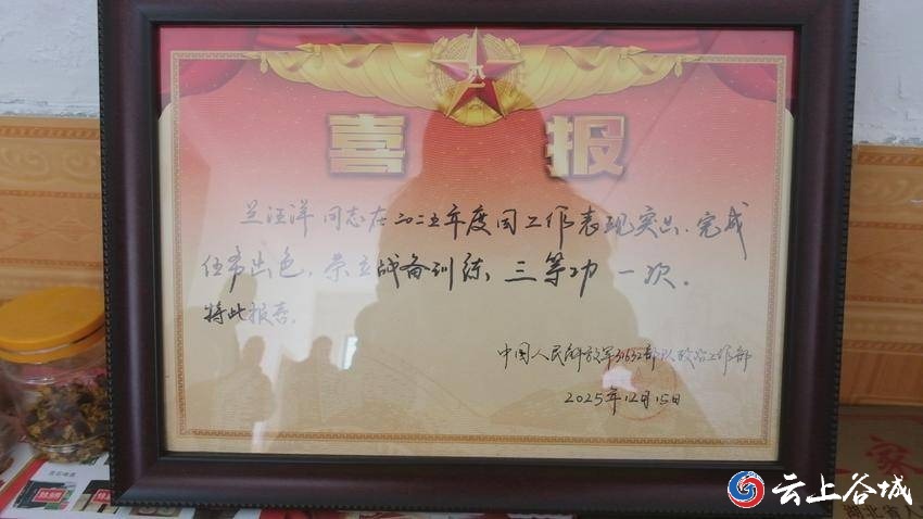 兰汪洋同志现服役于中国人民解放军某部队政治工作部,因在2025年度工作中表现优秀荣立个人三等功。此次送喜报仪式,县人武部、县退役军人事务局相关领导,村“两委”干部及工作人员与军人家属代表共同参与。