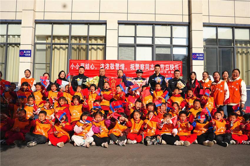 活动的最后,萌娃们为警察叔叔们献上了精心编排的舞蹈节目、手工绘画和锦旗,感谢民警们日复一日默默守护社会安定,保障校园安全。