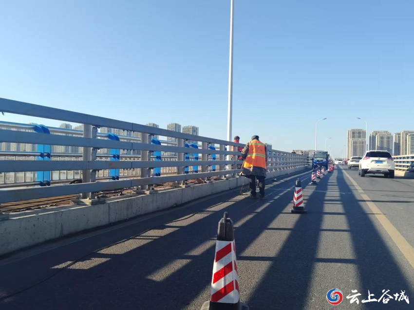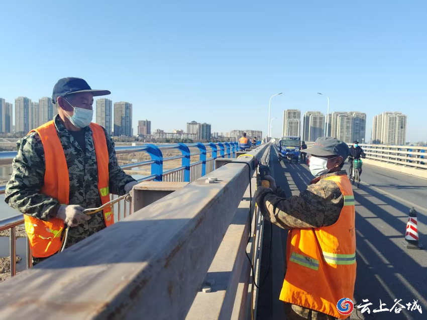 春节临近,谷城县交通公路部门多方筹集资金,对南河大桥人行道及行车道关键部位开展精细化除锈防腐修复,为市民新春出行筑牢安全防线。