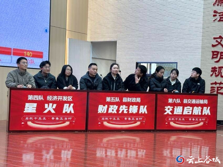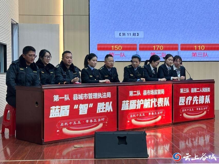 决赛现场,来自县城管执法局、县市场监管局等单位的六支青年代表队锋芒毕露。围绕党的创新理论、方针政策及县域发展实务,选手们沉着应答、默契配合,在必答题、抢答题等多个环节中展开智慧交锋。现场气氛紧张热烈,充分展现了谷城青年扎实的理论功底、敏捷的思辨能力和昂扬奋进的青春风采。