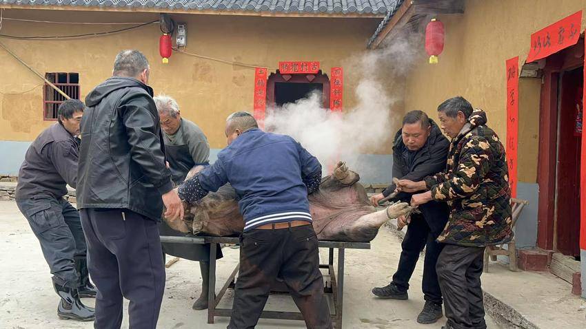 大家共同参与了充满乡土气息的“拉猪”活动,感受协作的乐趣,并围坐一起品尝热气腾腾的猪血汤,暖意融融间拉近了彼此的距离,质朴的乡村美食传递着浓浓温情。