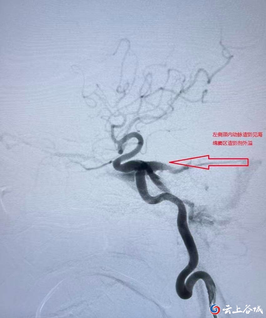 徐阿姨到谷城县人民医院就诊,谜底才终于揭开。医生们经过详细的脑血管检查,被确诊为“左侧颈内动脉海绵窦瘘”。
