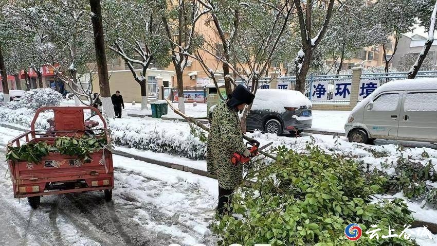 那一抹“橙黄色”始终活跃在一线——环卫工人全员上岗,人机配合高效除雪,并在公厕等重点区域铺设防滑垫,默默守护市民脚下的安全。园林部门也同步行动,对城区道路、公园广场沿线树木进行巡查,及时清理积雪压枝和断枝,防止次生危害发生。