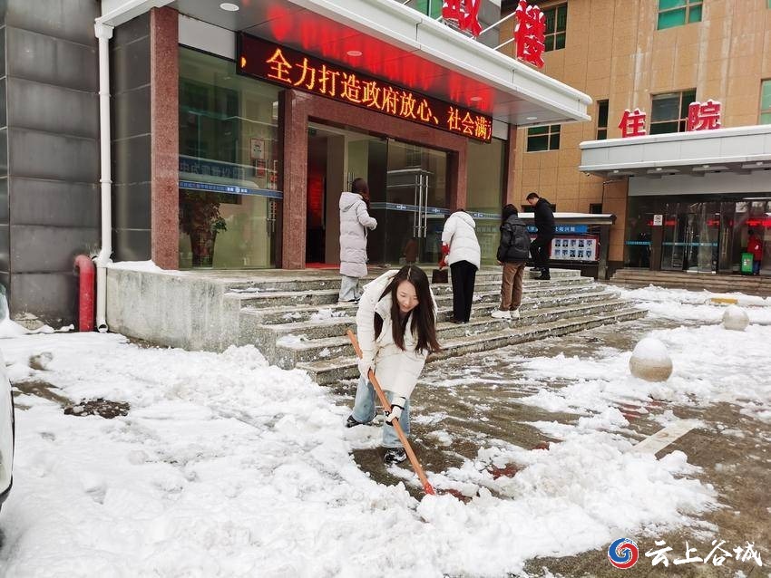 “为保障患者就医通道、人员车辆畅通无阻,全体职能部门工作人员参加除雪。”1月20日清早,一声令下,谷城县人民医院干部职工积极响应号召,化身“清雪卫士”,争先恐后参加“除雪保畅通”工作。