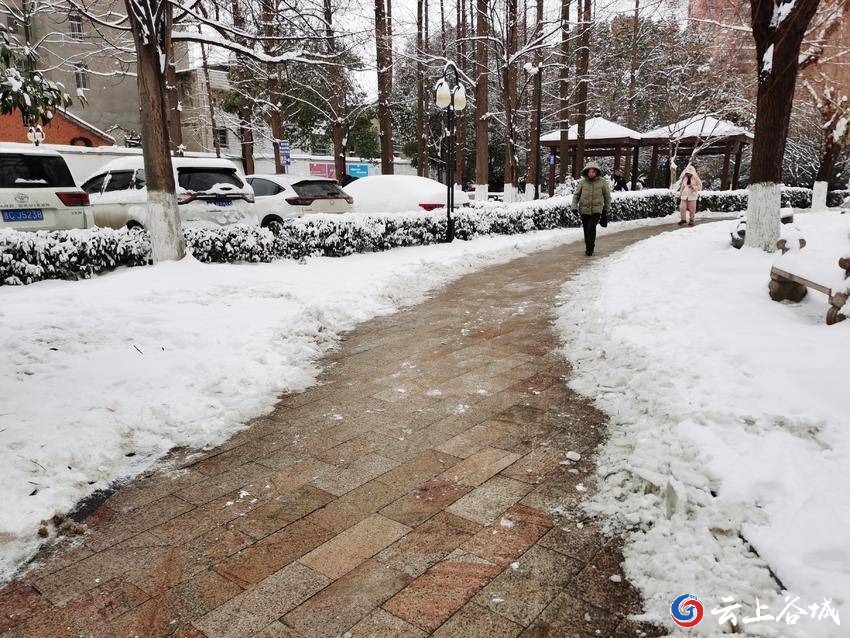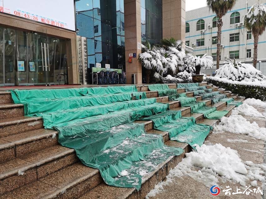 1月19日,谷城普降大雪,大地银装素裹。谷城县人民医院院内厚厚的积雪不仅导致路面上冻结成冰,还严重影响群众出行、就医。