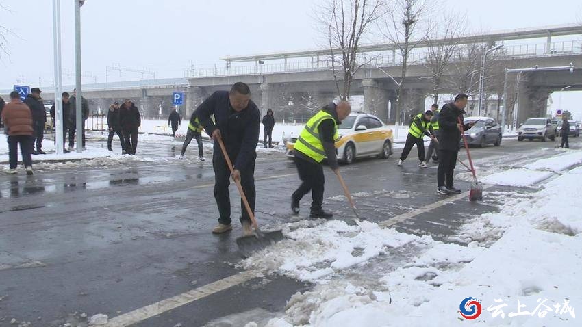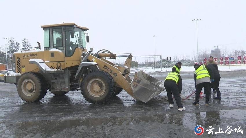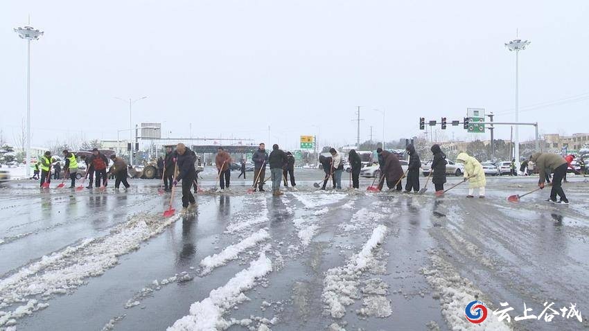 谷城县国投公司此次铲雪点位于谷城高速路出口和谷城高铁站路段,共有100余人及机械参加劳动。他们采取“多人联动、人机配合”模式开展铲雪工作。大家手持铁锹、扫帚等工具,有的奋力铲除路面积雪,有的默契配合将积雪堆至道路两侧安全区域。经过近2个小时的劳动,该路段路面积雪已被清扫干净。